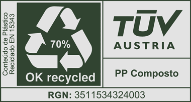 Ver documentoObtivemos o esquema de certificação 'Ok Recycled', conseguindo uma integração de 70% de material reciclado na nossa matéria prima.